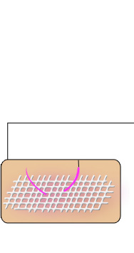 관자 부위의 헤어라인 안쪽에서 올려진 연부조직을 고정시키고 유지시켜 줍니다.