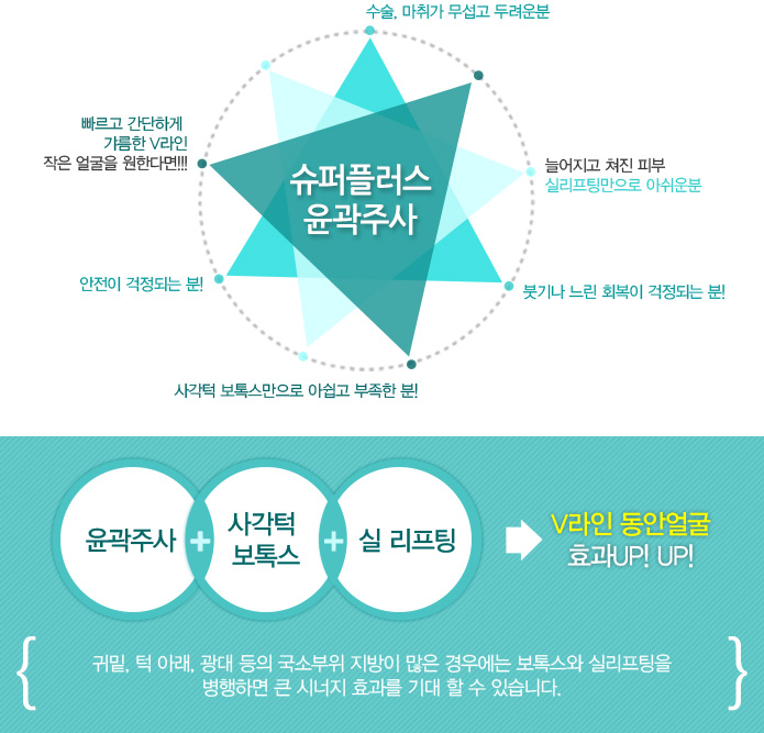 V라인효과, 얼굴축소 효과를 기대 할 수 있는 주사요법입니다.