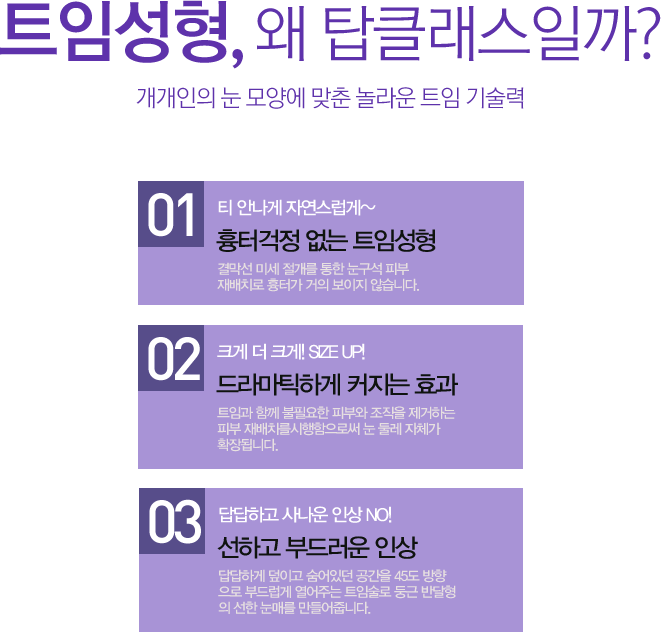 탑클래스의 매직 앞트임은 흉터를 최소화 하고 몽고주름만 개선시키는 것이 아니라