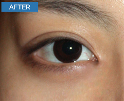 쌍꺼풀 수술을 진행했기 때문에 나타나는 현상으로, 앞트임 수술이 더해져야만 눈이 길면서 시원스럽게