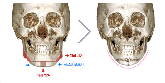 • 가운데 뼈를 제거하고 양 옆의 턱 끝 조각을 중앙으로 모아