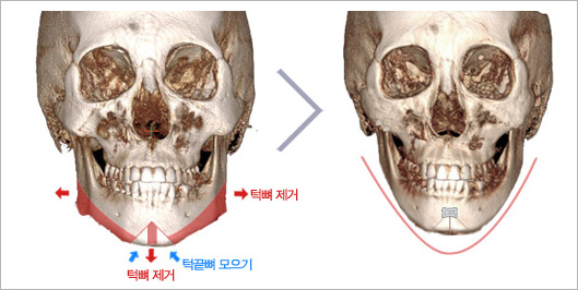 point 턱 끝 포인트 절골술+긴곡선 사각턱 축소술+피질골 절제술