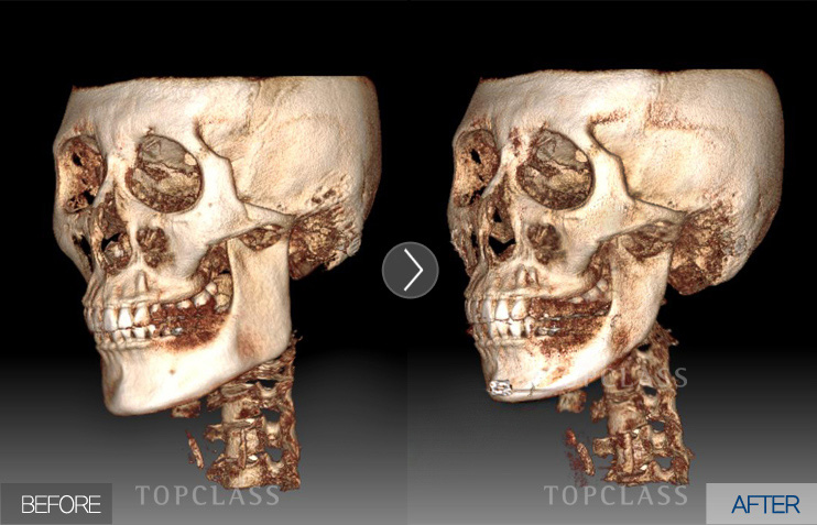 두꺼운 턱뼈의 여러층 중에서 가장 바깥부분의 층을 제거해줌으써 하악뼈 자체의 두께가 줄어들어 확실한 정면효과를 볼 수 있음