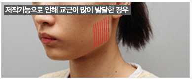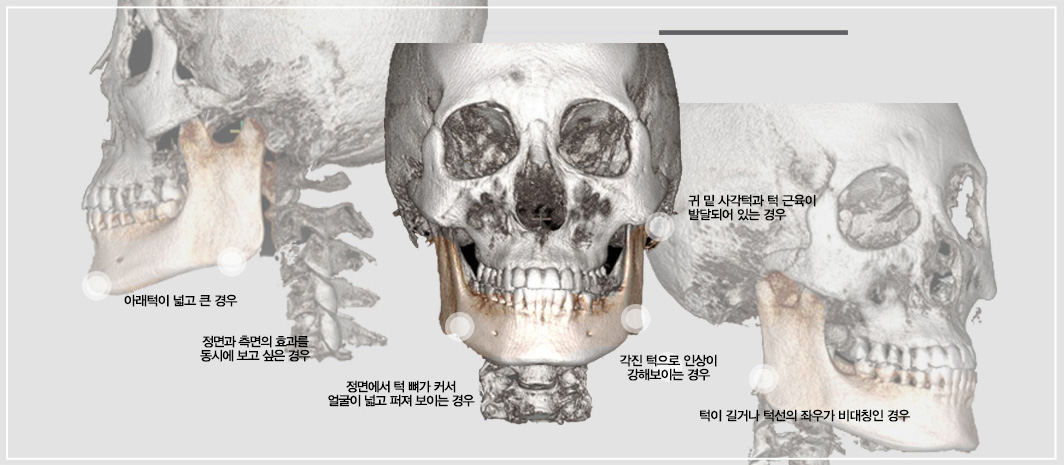 • 귀밑 사각턱이 과도하게 발달하여 남성적으로 보이거나