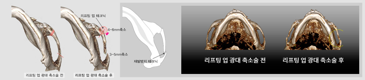 광대 축소 효과 윤곽 뼈의 형태에 따른 맞춤 절골법으로 최대 반경 축소효과