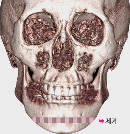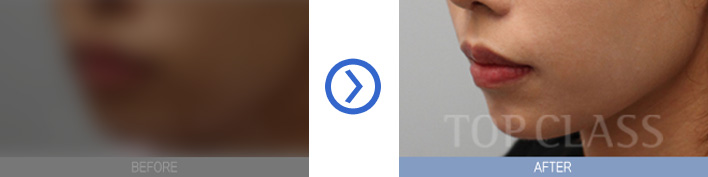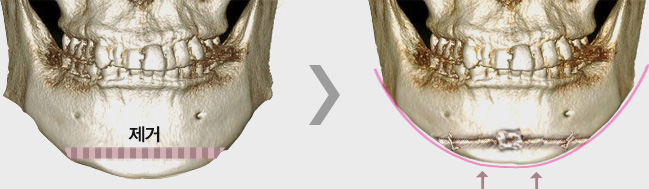 아래턱과 치열은 정상이지만 턱 끝이 돌출되어 있는 경우에 시행하는 것으로 턱 끝의 일부를