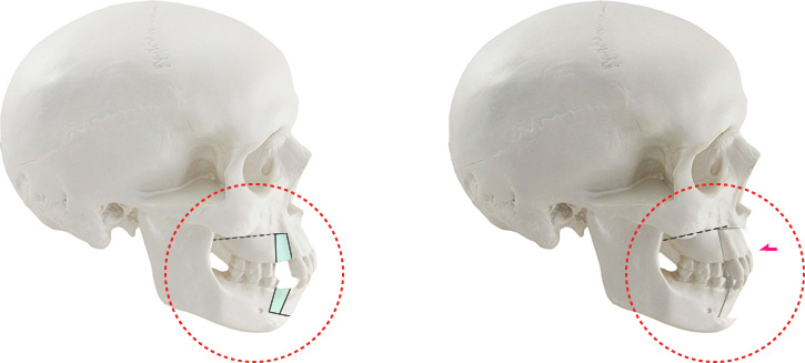 교합이 맞지 않을 경우에 주로 시행되는 것으로 하악의 뒷부분을 분할하여 치열 전체를 뒤로 후퇴시키는 수술입니다.