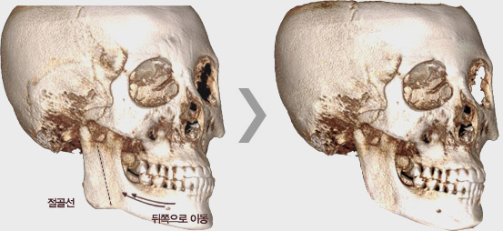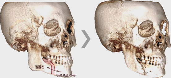 절골하여 뒤로 또는 위로 수평 이동하게 됩니다.